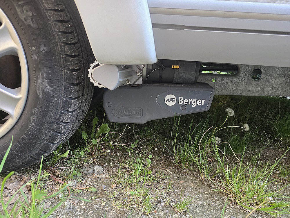 Bereits beim einfangen Rangieren aber wir festgestellt, dass die 2 Meter mehr Wohnwagen durchaus ins Gewicht gehen. Das zuvor so simple Schieben ist nicht mehr ohne weiteres möglich. Somit war es nicht weiter verwunderlich, dass wir bereits kurze Zeit später den Wohnwagen mit einem Rangierhilfe ausgestattet haben. Da wir einen Doppelachser zu bewegen haben, haben wir uns für Mover Fritz Berger Platinum vollautomatisch (Link zu https://www.fritz-berger.de...) entschieden.