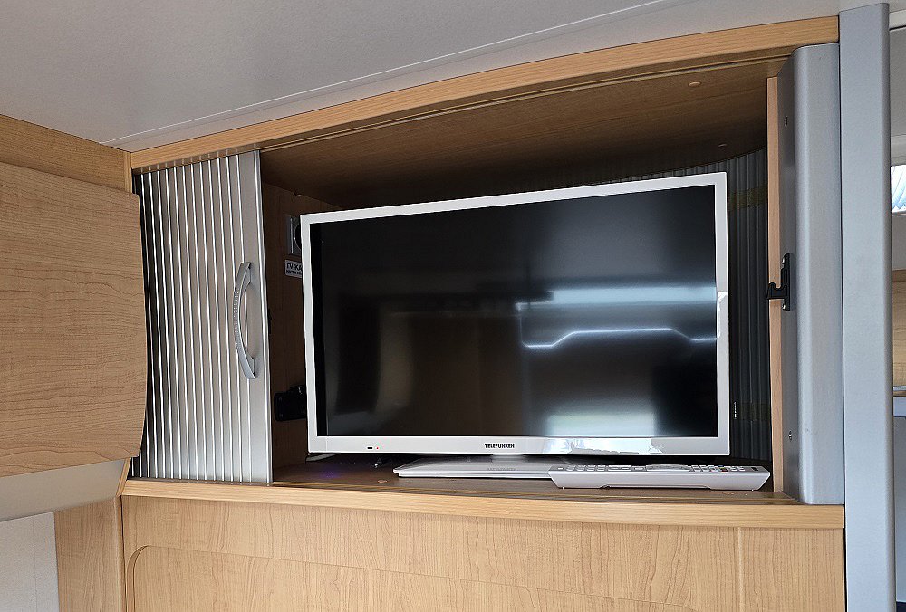 Auch wenn man der Meinung sein kann, dass man im Urlaub auch mal auf einen Fernseher verzichten kann, ist es dennoch eine Erleichterung, wenn man die tägliche Routine (z.B. Sandmann vor den Schlafengehen) beibehalten kann. Da wir diesen dann ggf. auch für alles Varianten nutzen wollten, ist die Wahl auf einen Fernseher von Telefunken mit 24 Zoll und integriertem DVD Player (Link zu https://www.mediamarkt.de...) gefallen. Dieser kann sowohl mit 12V als auch mit 220V betrieben werden.
